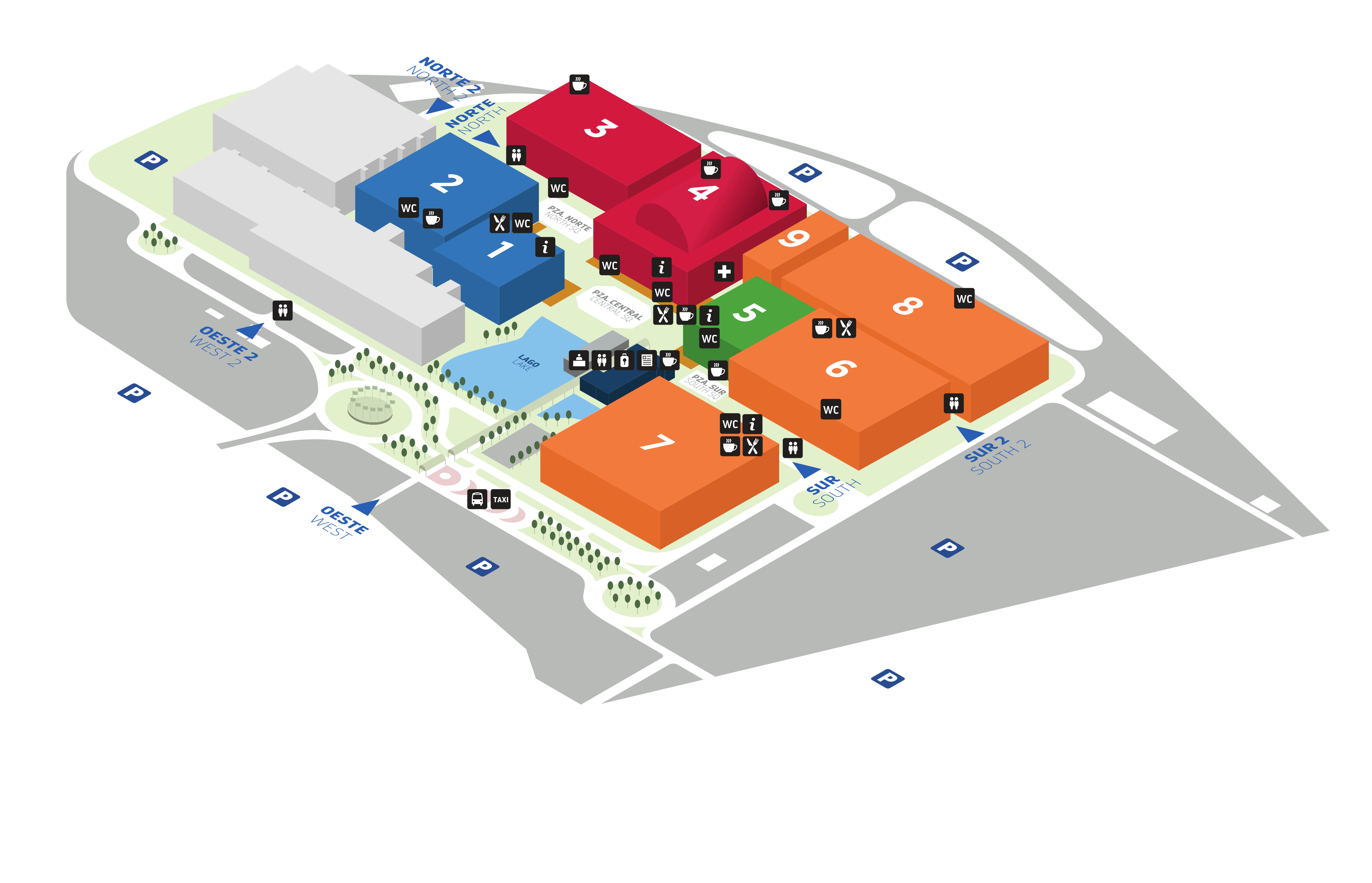 Pulse sobre el pabellón deseado para ver el detalle de los expositores o sobre el edificio de congresos para ver el detalle de las salas de las jornadas técnicas.